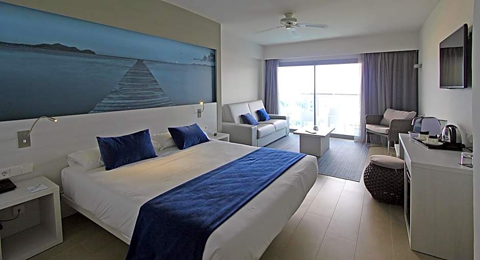 JUNIOR SUITE SEA VIEW 2 ADULTS is 215 square feet and includes 2 single beds 80-130 width plus balcony, terrace, desk, satellite tv , hairdryer, and safe.
